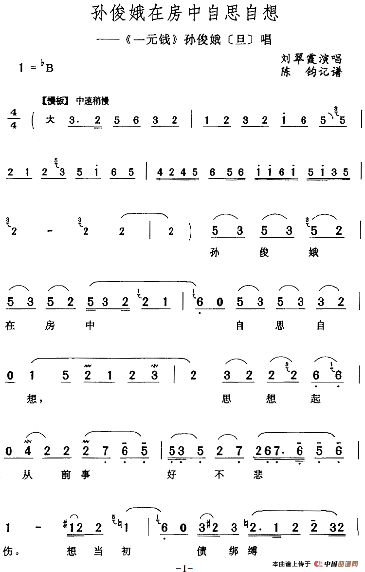 关于《孙俊娥在房中自思自想》曲谱的评论
