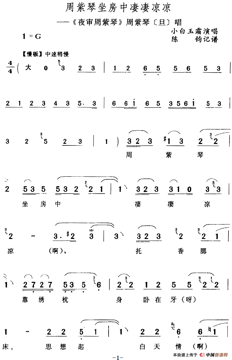 关于《周紫琴坐房中凄凄凉凉》曲谱的评论