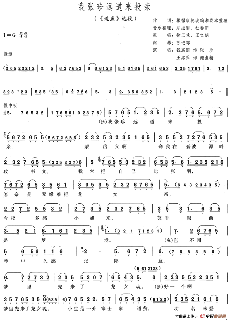 关于《我张珍远道来投亲》曲谱的评论
