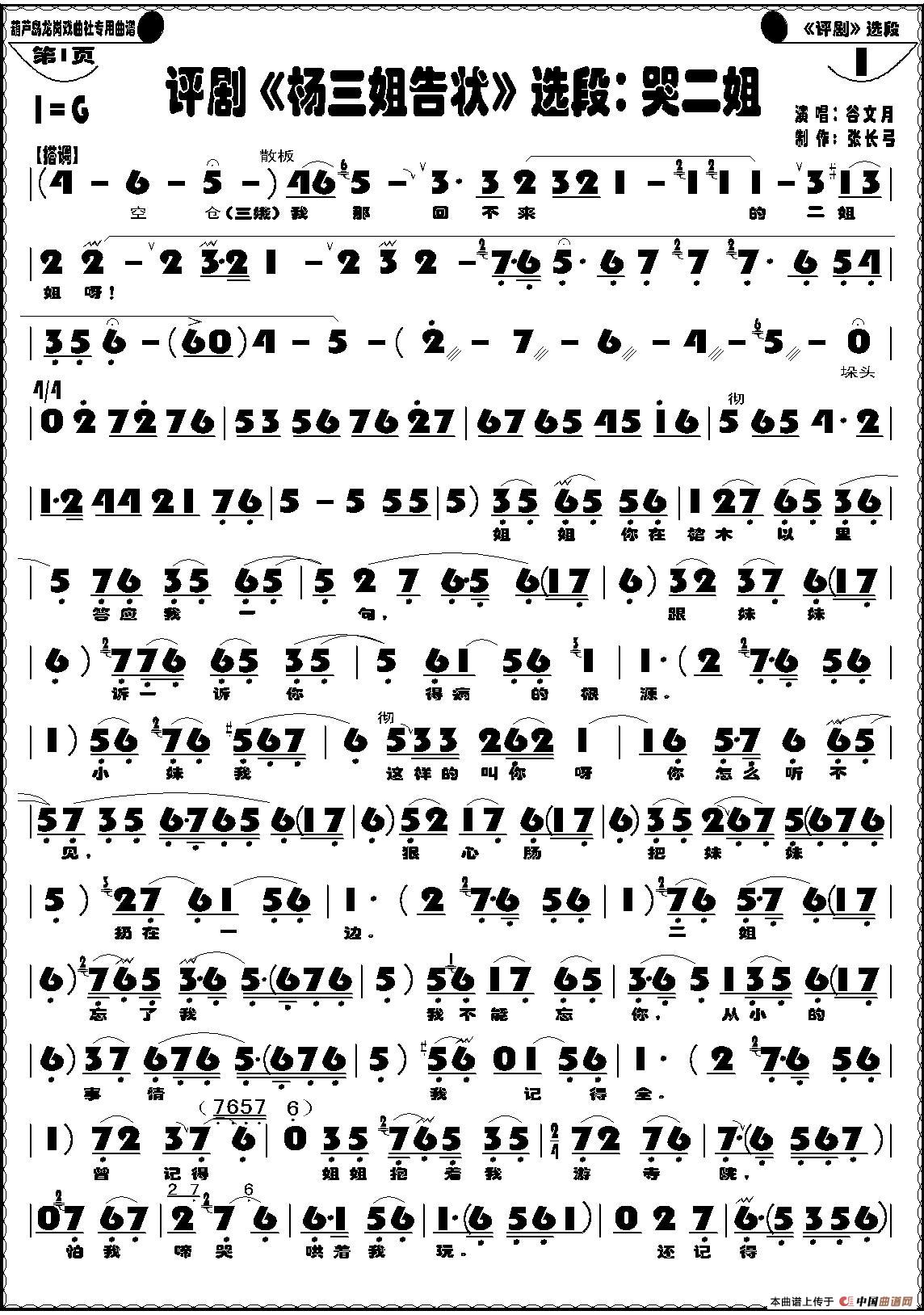 关于《哭二姐》曲谱的评论