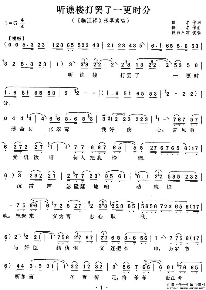 关于《听谯楼打罢了一更时分》曲谱的评论