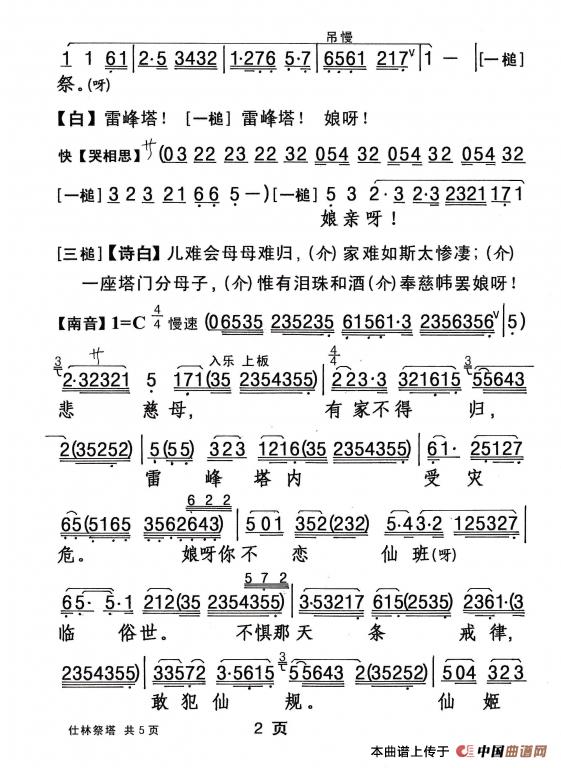 《[粤剧] 仕林祭塔 》文本歌词