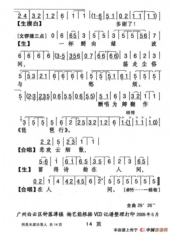 关于《[粤剧] 同是天涯沦落人》曲谱的评论
