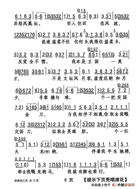 提示:在曲谱图片上单击右键,选择“图片另存为...”即可将曲谱保存到您的电脑中,打印时候可将图片插入到WORD中,调整合适大小打印即可。