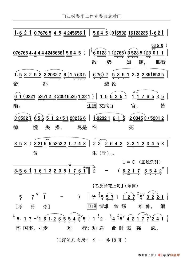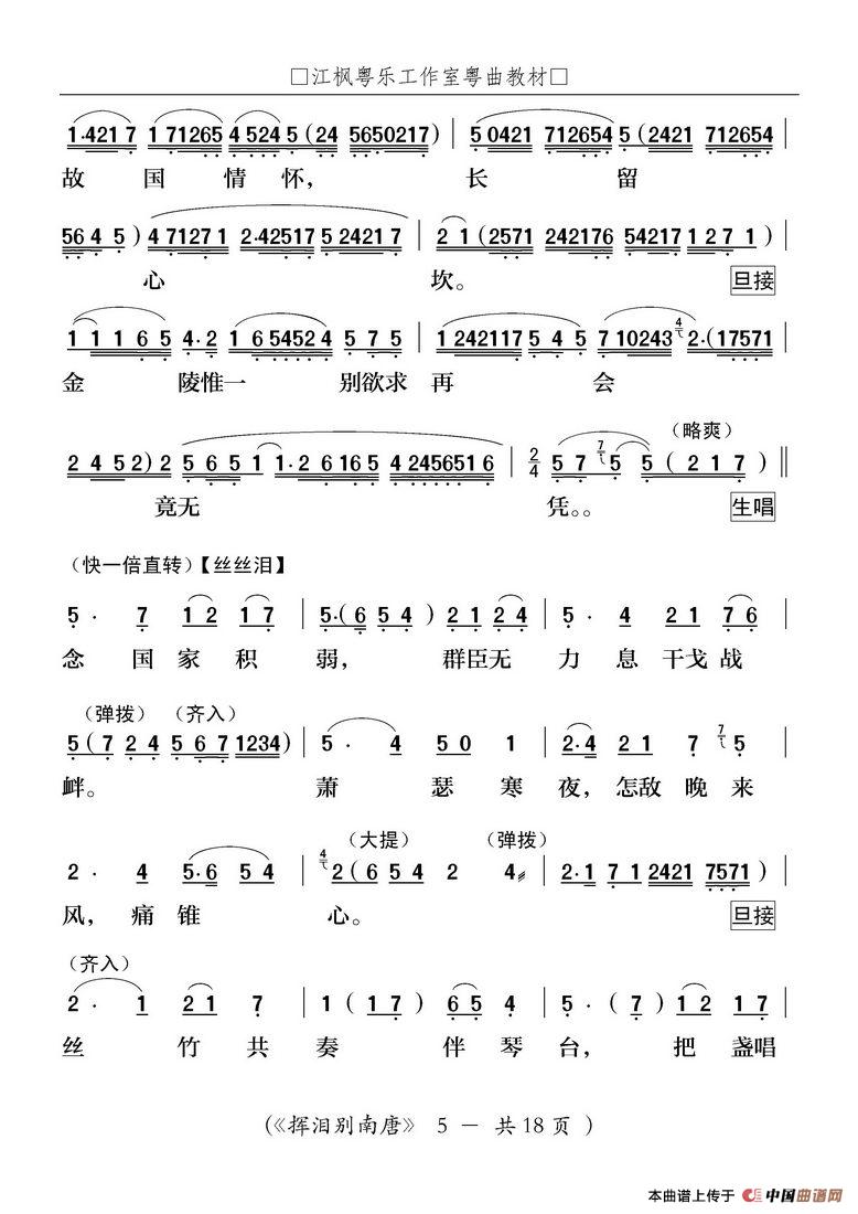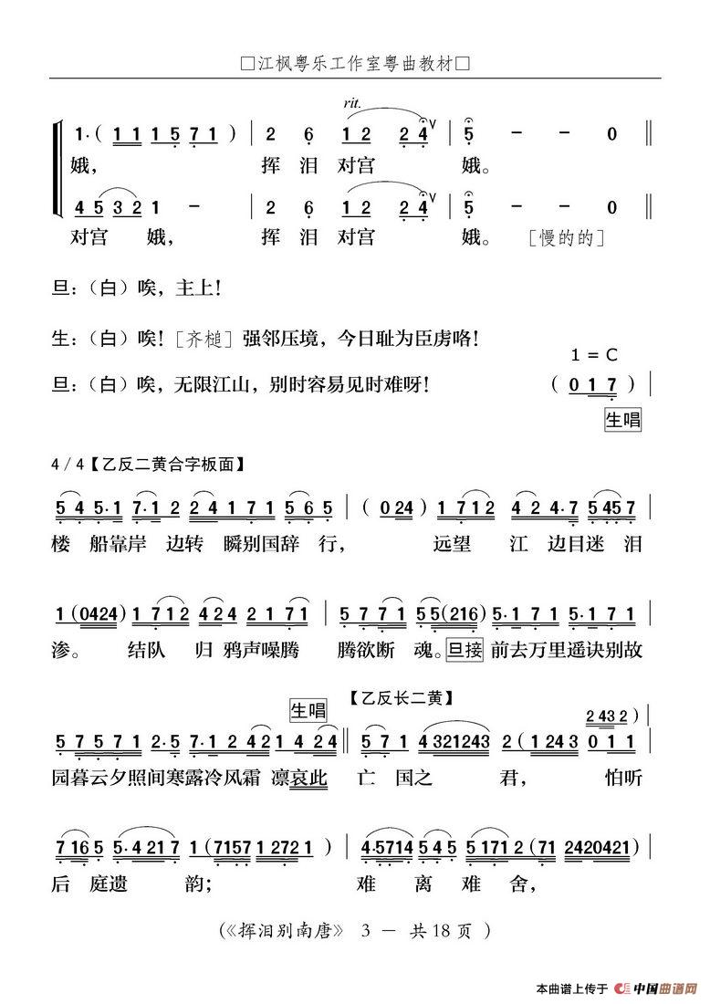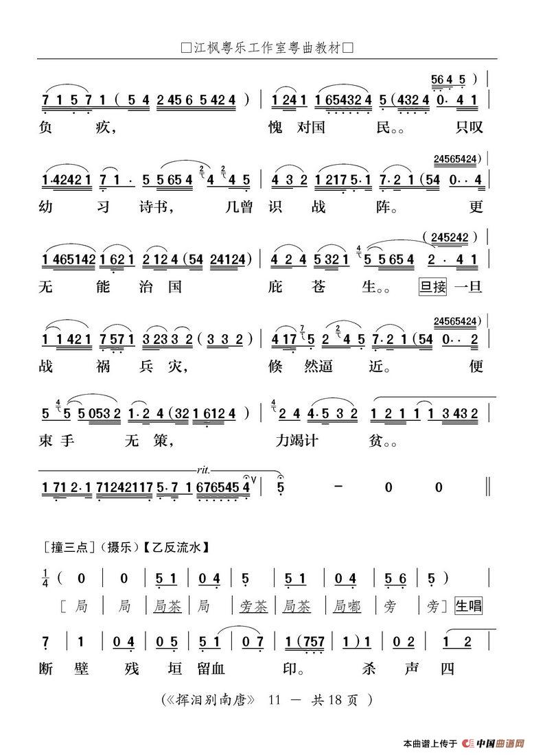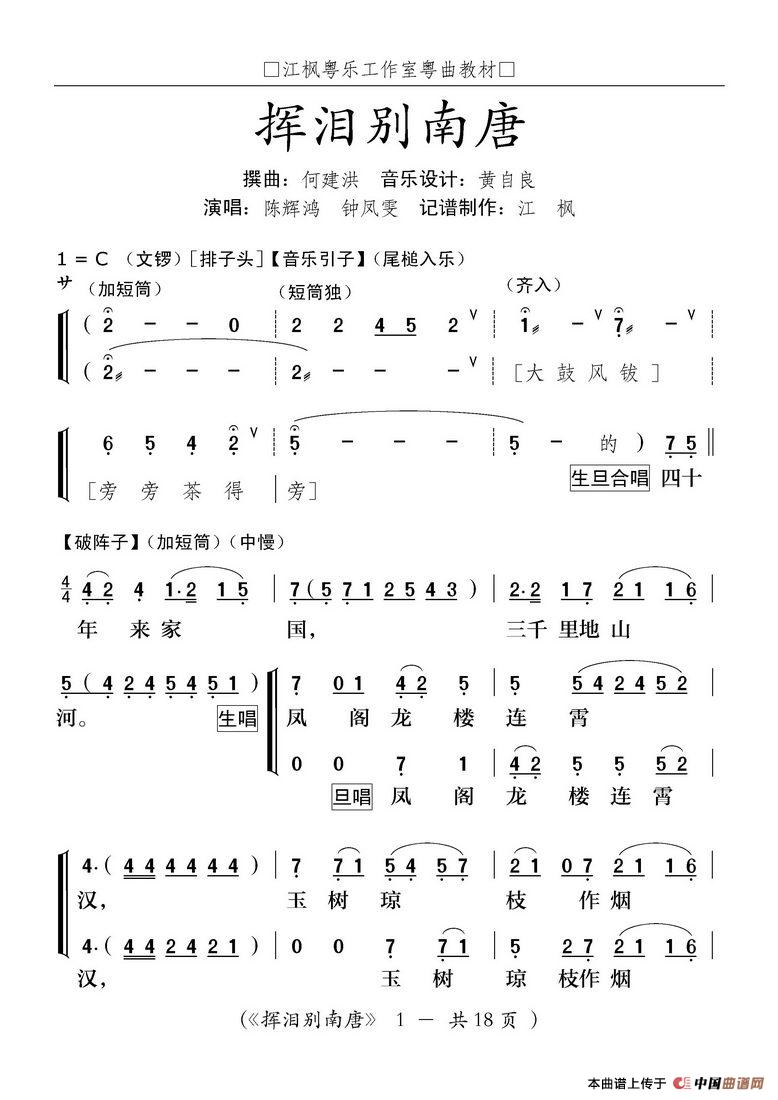 关于《[粤剧] 挥泪别南唐》曲谱的评论