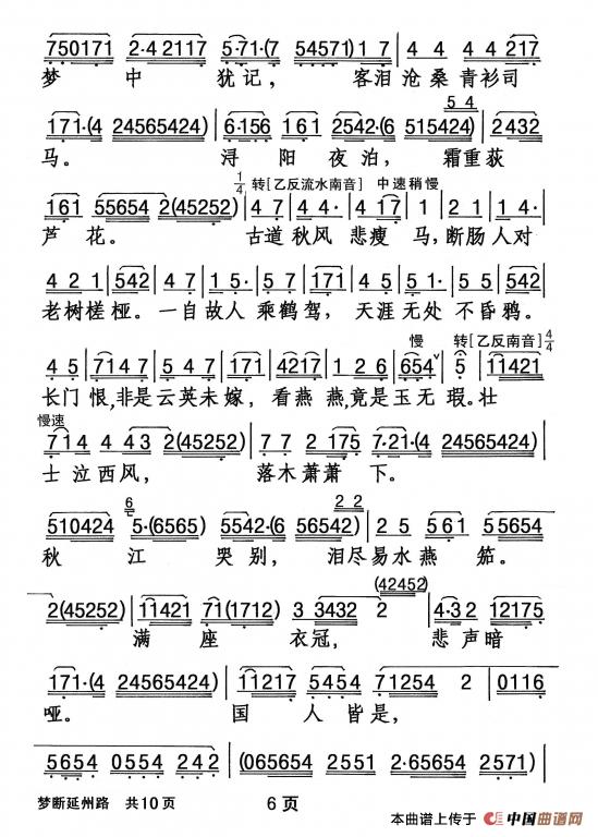 旦:【乙反南音】最是寒入梦,含泪认分差,满目山川一任风吹雨打,佛狸祠下,一片社鼓神鸦,空说百二秦关,不敌文姬声价,寄奴恨事,几许恨寄云霞,梦中犹记客泪沧桑青衫司马,浔阳夜泊,霜重荻芦花,古道秋风悲瘦马,断肠人对老树差桠,因自故人乘鹤驾,天涯何处不昏鸦,长门恨呀,非是云英未嫁,看燕燕竟是玉无瑕,壮士泣西风,落木潇潇下,秋江哭别,泪尽易水燕笳,满座衣冠悲声喑哑,国人皆是……国人皆是散髮披麻。