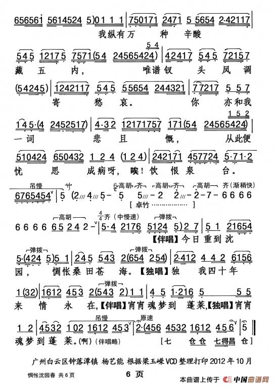 关于《[粤剧] 惆怅沈园春》曲谱的评论
