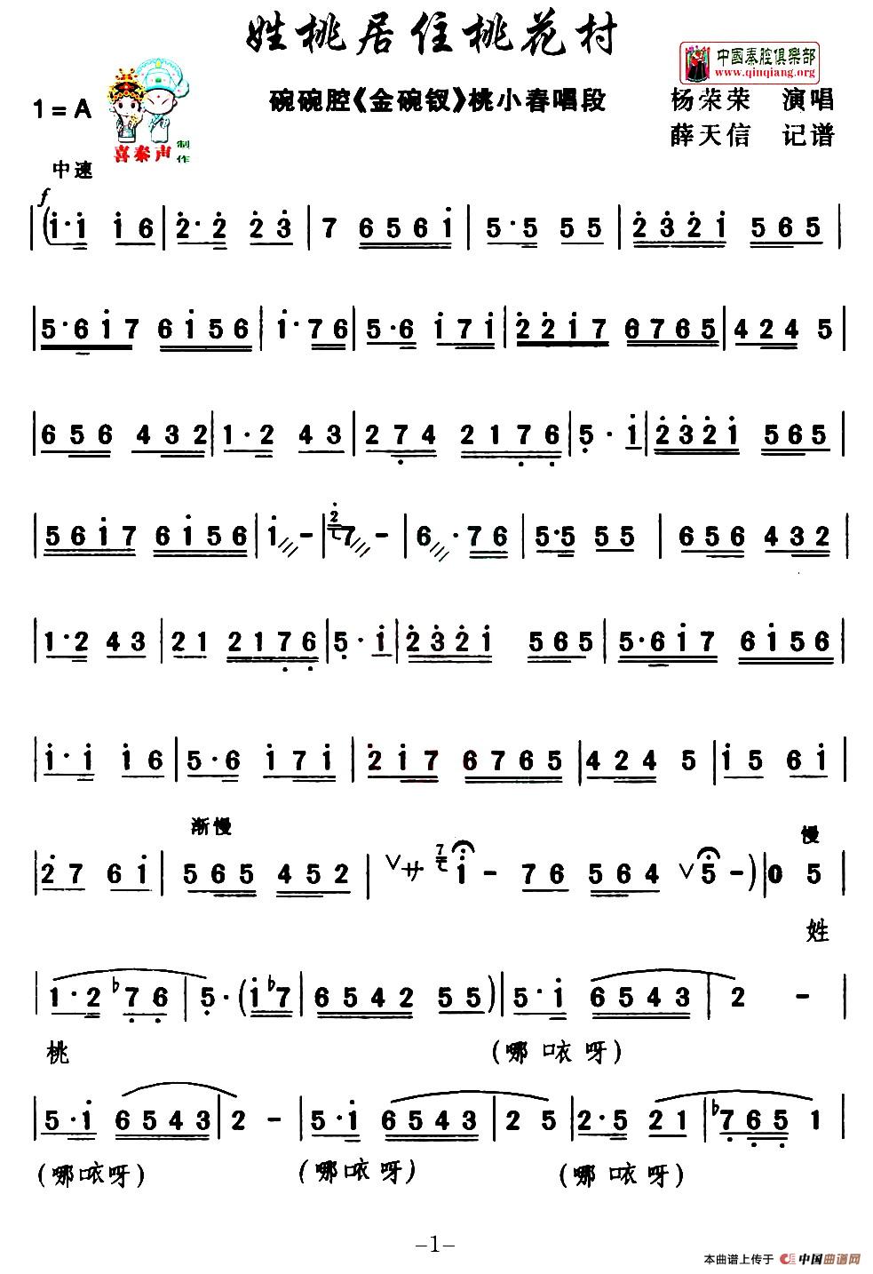 [碗碗腔] 姓桃居住桃花村(《金碗钗》桃小春唱段)(薛天信记谱版)