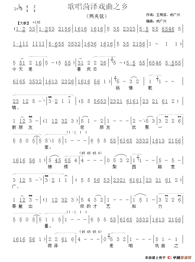 关于《[两夹弦] 歌唱菏泽戏曲之乡》曲谱的评论