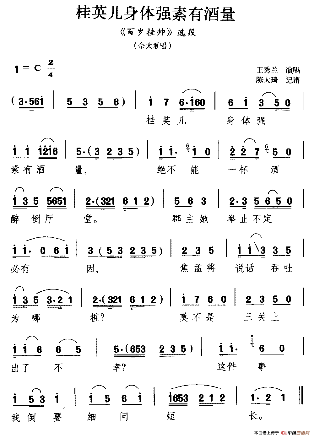 关于《[扬剧] 桂英儿身体强素有酒量》曲谱的评论
