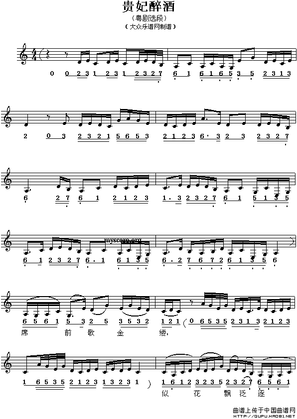 关于《[粤剧唱段]贵妃醉酒》曲谱的评论