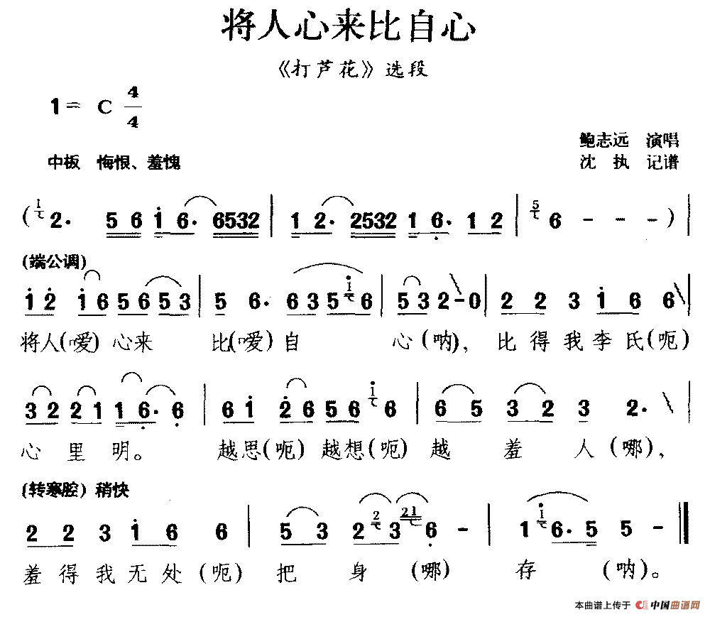关于《[庐剧]将人心来比自心》曲谱的评论