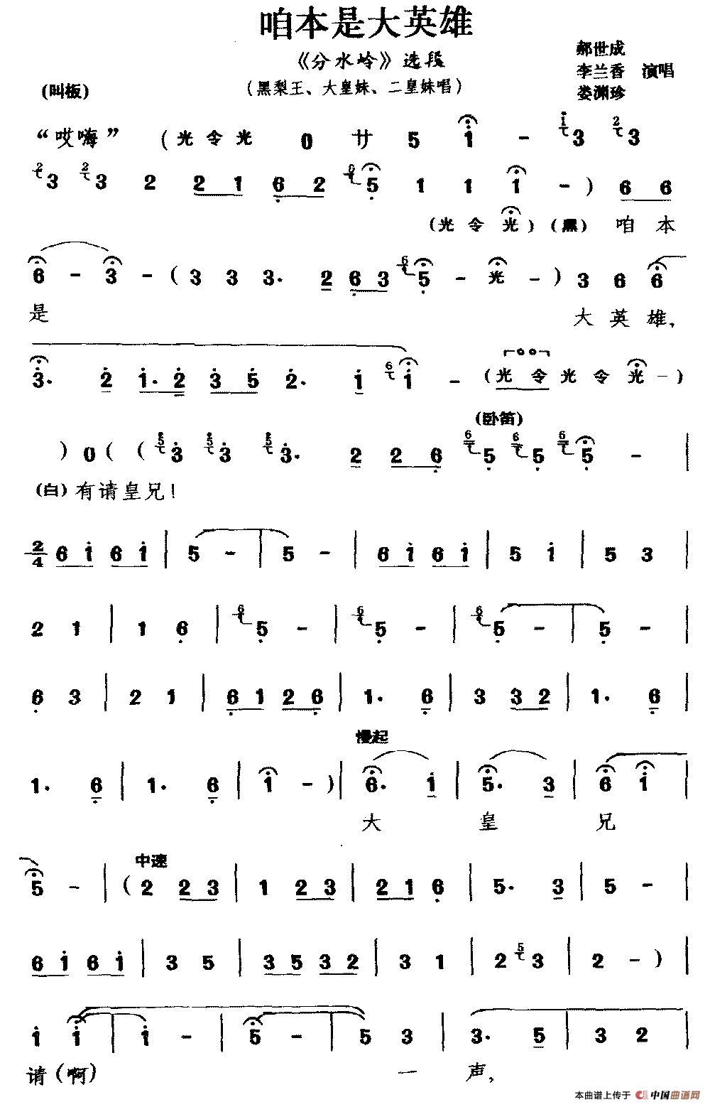 ![[锣戏]咱本是大英雄(《分水岭》选段 黑梨王 大皇妹 二皇妹唱)(1)_原文件名:咱本是大英雄2.png](/Public/Uploads/2014/11/15/65466e33d9b34d.png)