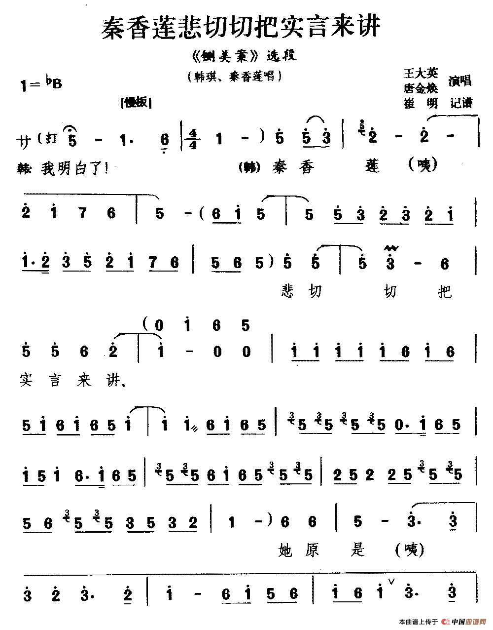 关于《[宛梆]莲悲切切把实言来讲》曲谱的评论