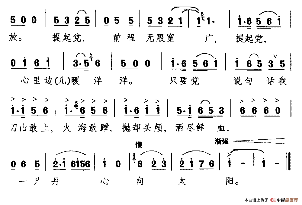 作词:李章 作曲:刘伯涛 演唱(奏):王风朝 来源:《中国曲谱网》 上传:沉舟侧畔过