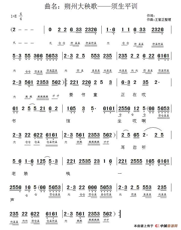 关于《[朔州大秧歌]须生平训》曲谱的评论