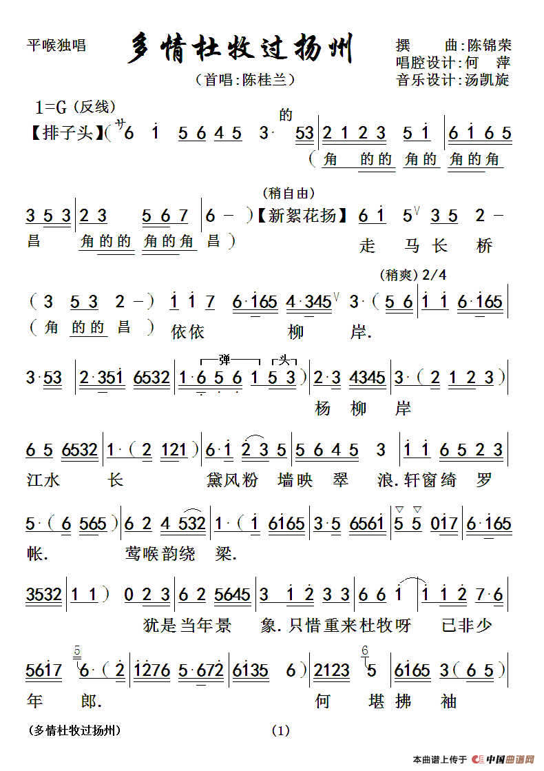 关于《[粤曲]多情杜牧过杨州》曲谱的评论