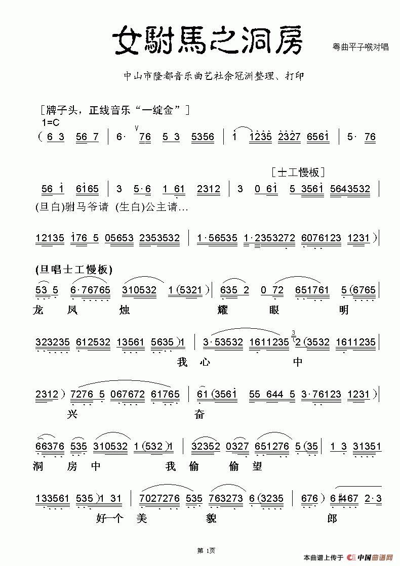 关于《[粤曲]女驸马之洞房》曲谱的评论