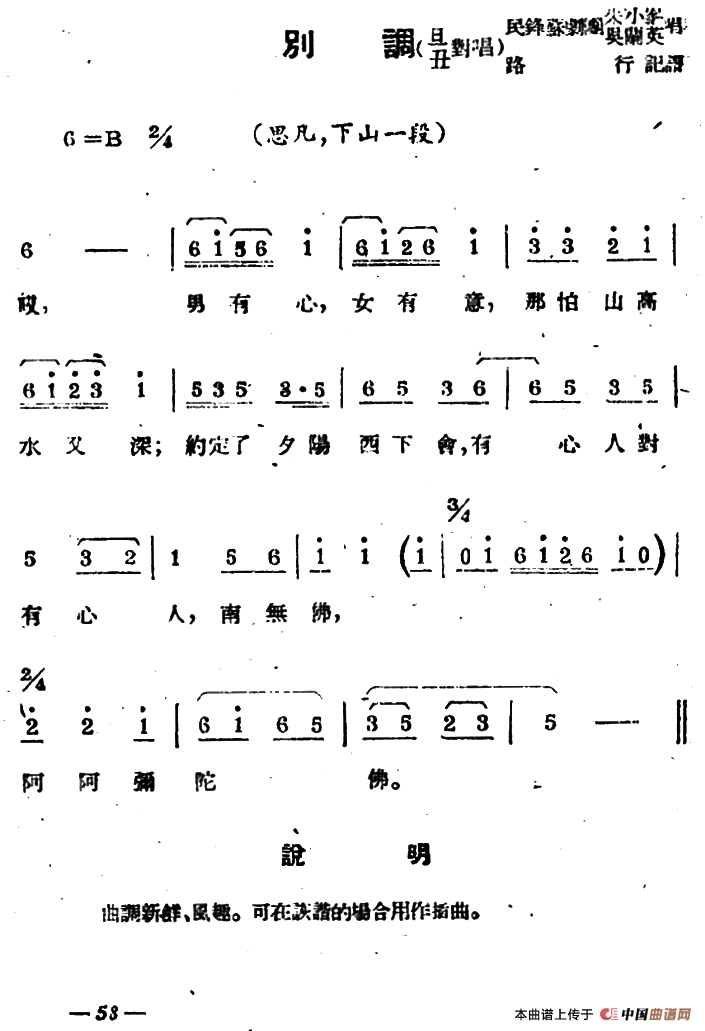 关于《[苏剧]别调(旦丑对唱)》曲谱的评论