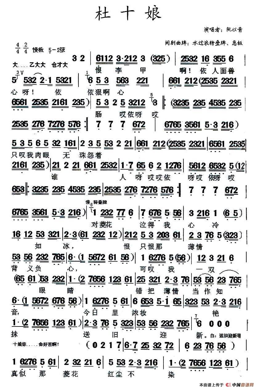 关于《[闽剧] 杜十娘》曲谱的评论