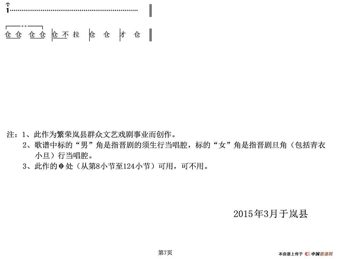 致谢:《中国曲谱网》衷心感谢作者老师馈赠原版歌谱!