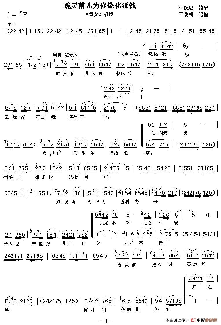 关于《[眉户]跪灵前儿为你烧化纸钱》曲谱的评论
