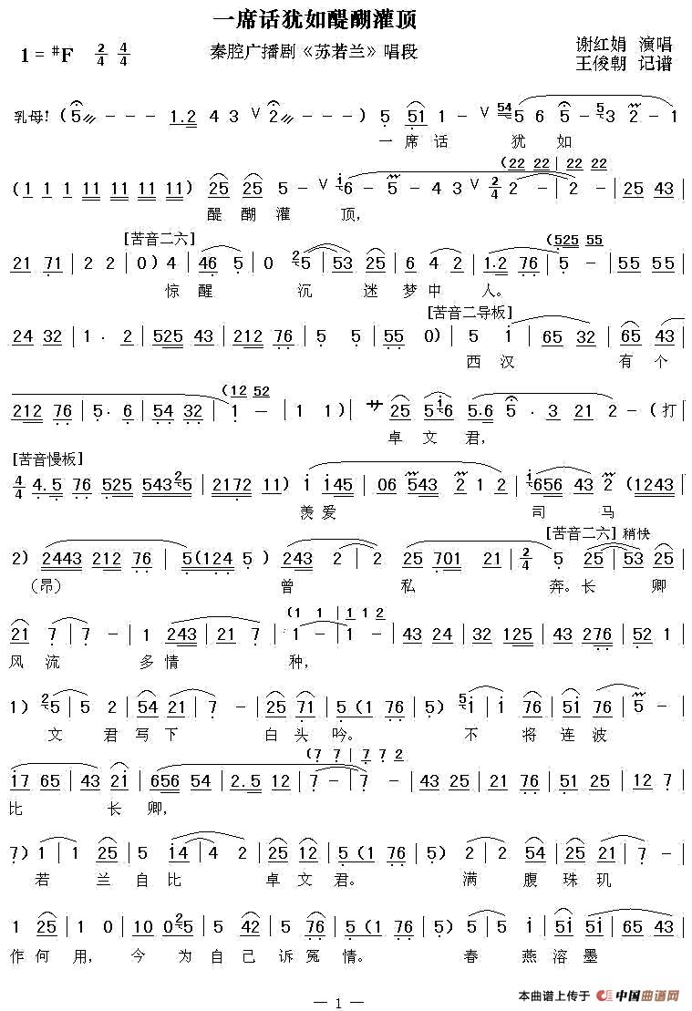 关于《[秦腔]一席话犹如醍醐灌顶》曲谱的评论