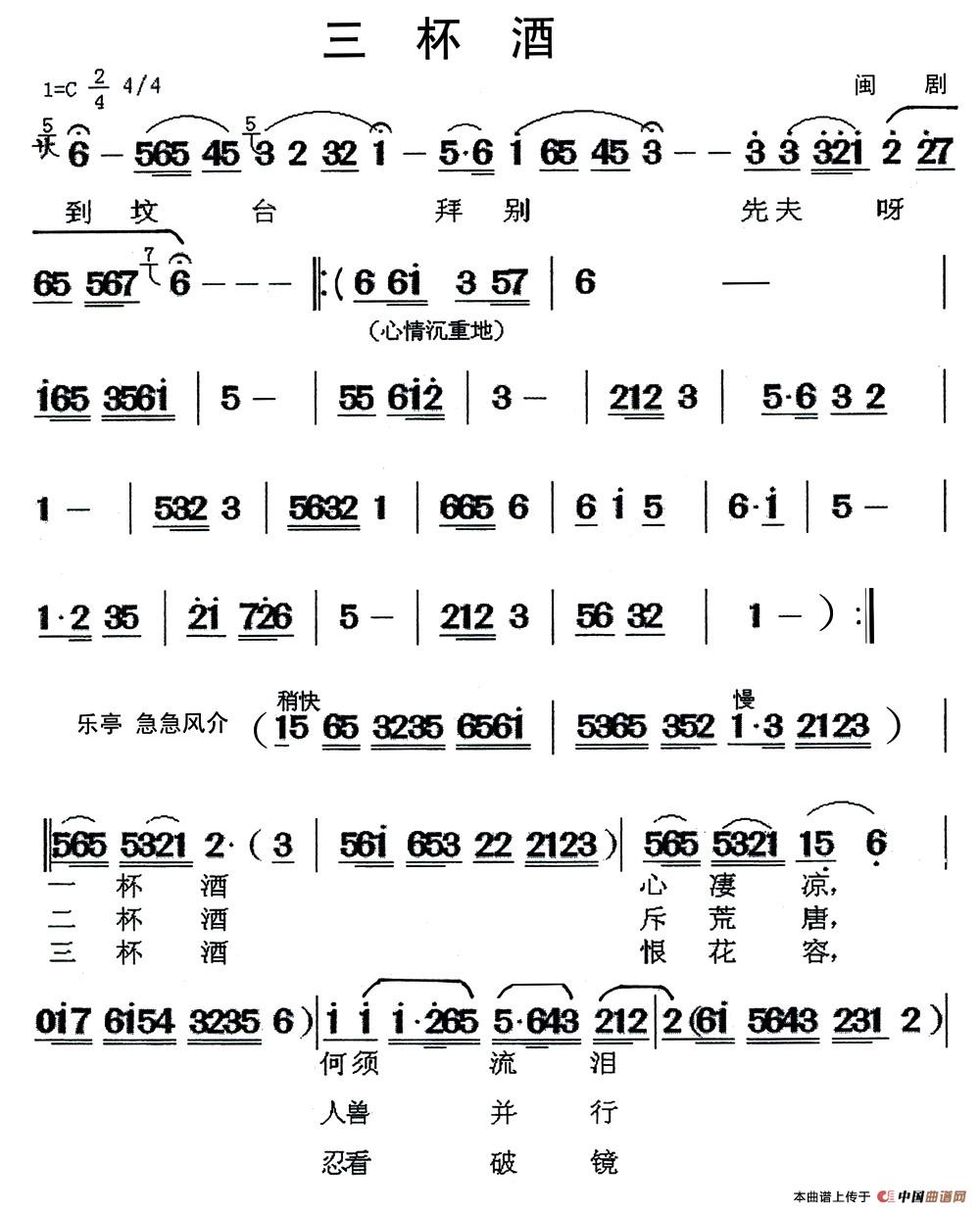关于《[闽剧]三杯酒》曲谱的评论