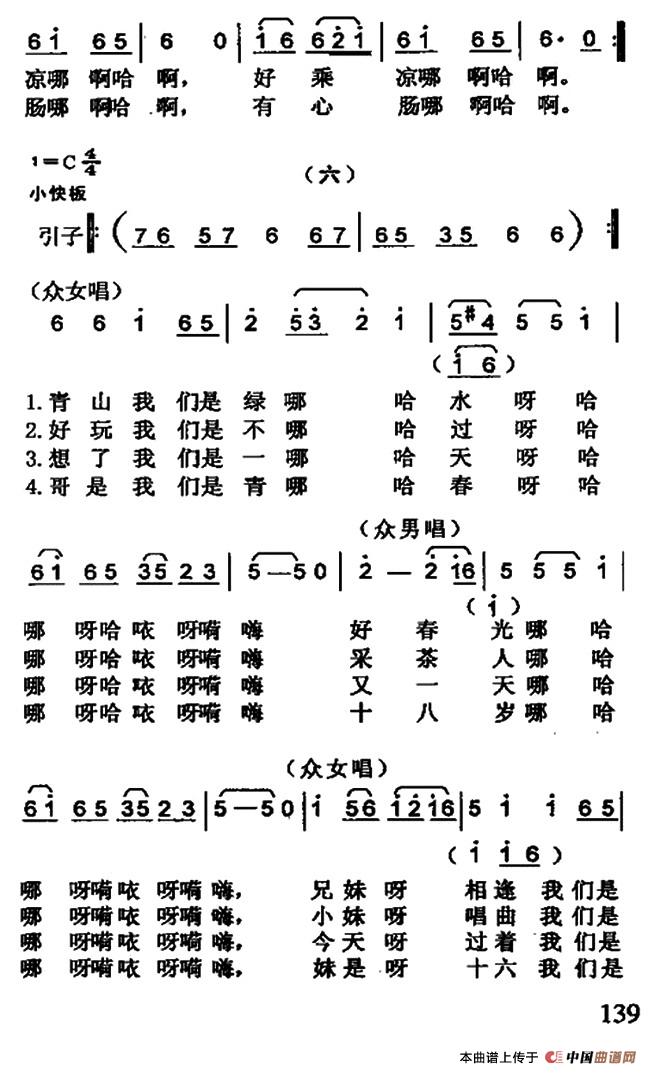 作曲:云南花灯剧团改编 来源:《中国曲谱网》 上传:秋叶起舞