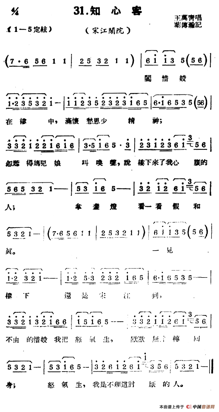 关于《[扬剧曲牌]知心客》曲谱的评论