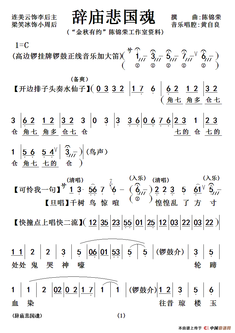 关于《[粤曲]辞庙悲国魂》曲谱的评论