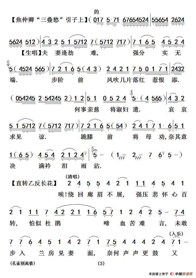 关于《[粤曲]孔雀别离情》曲谱的评论