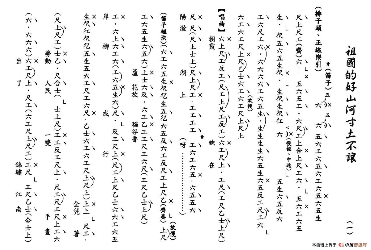 [粤曲]祖国的好山河寸土不让(工尺谱)