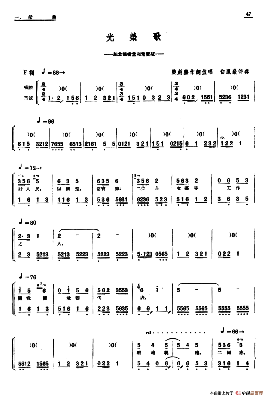 关于《[单弦·岔曲]光荣歌》曲谱的评论