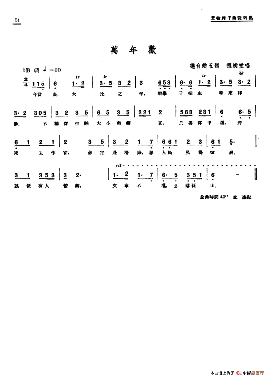 关于《[单弦·牌子]万年欢》曲谱的评论