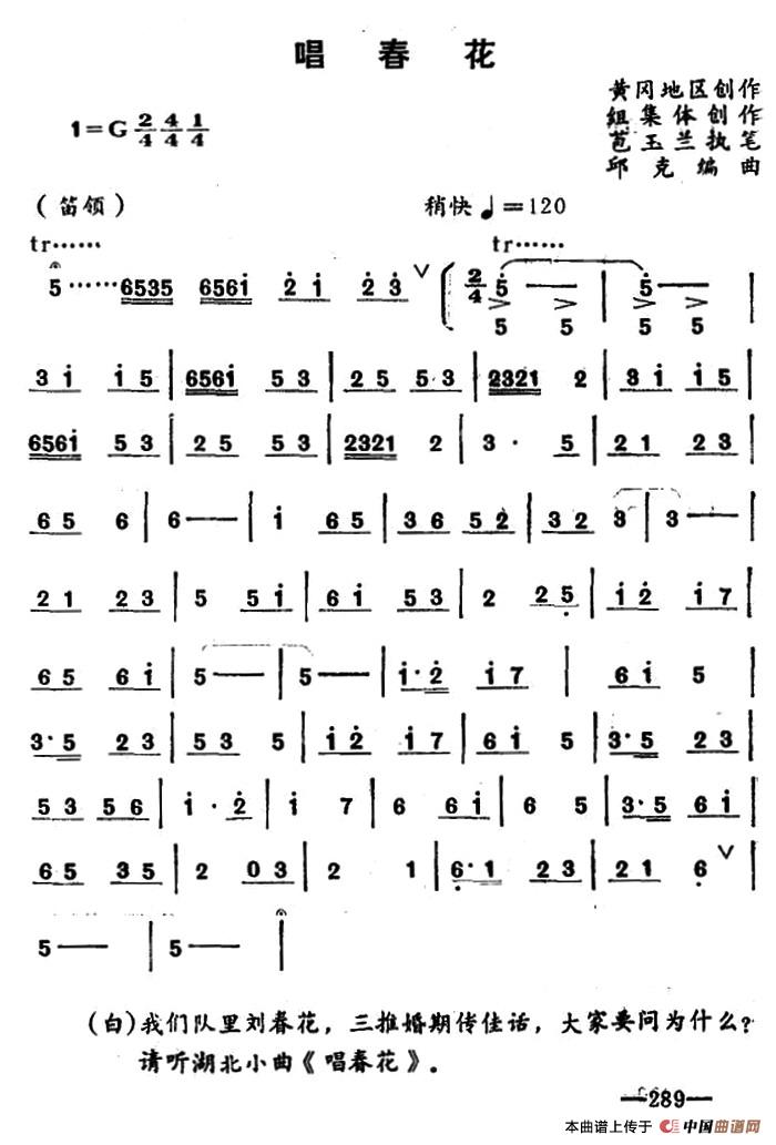 关于《[湖北小曲]唱春花》曲谱的评论
