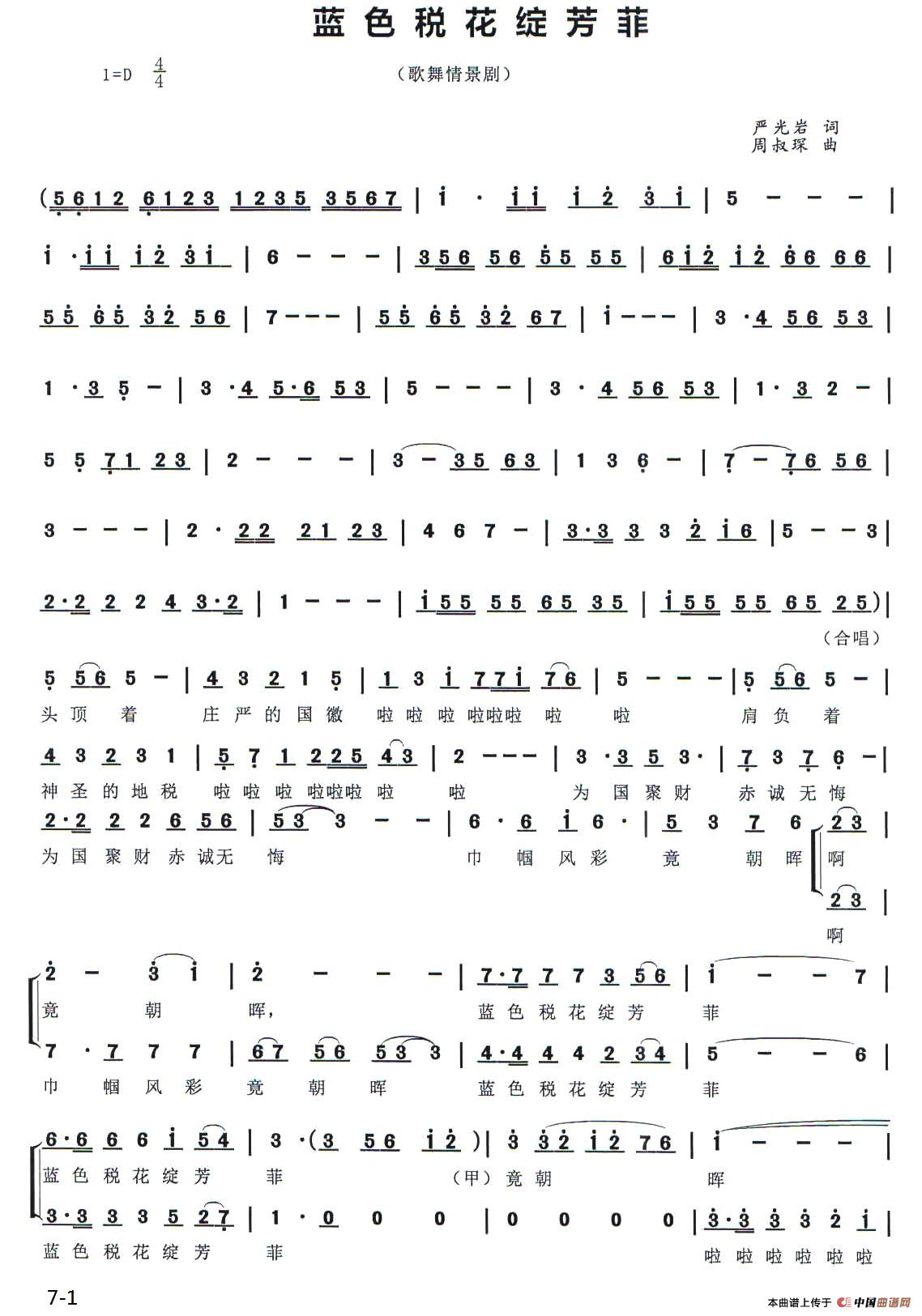 关于《[歌舞情景剧]蓝色税花绽芳菲》曲谱的评论