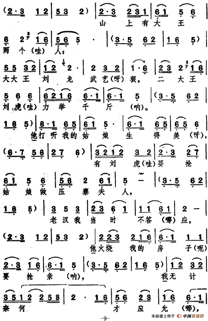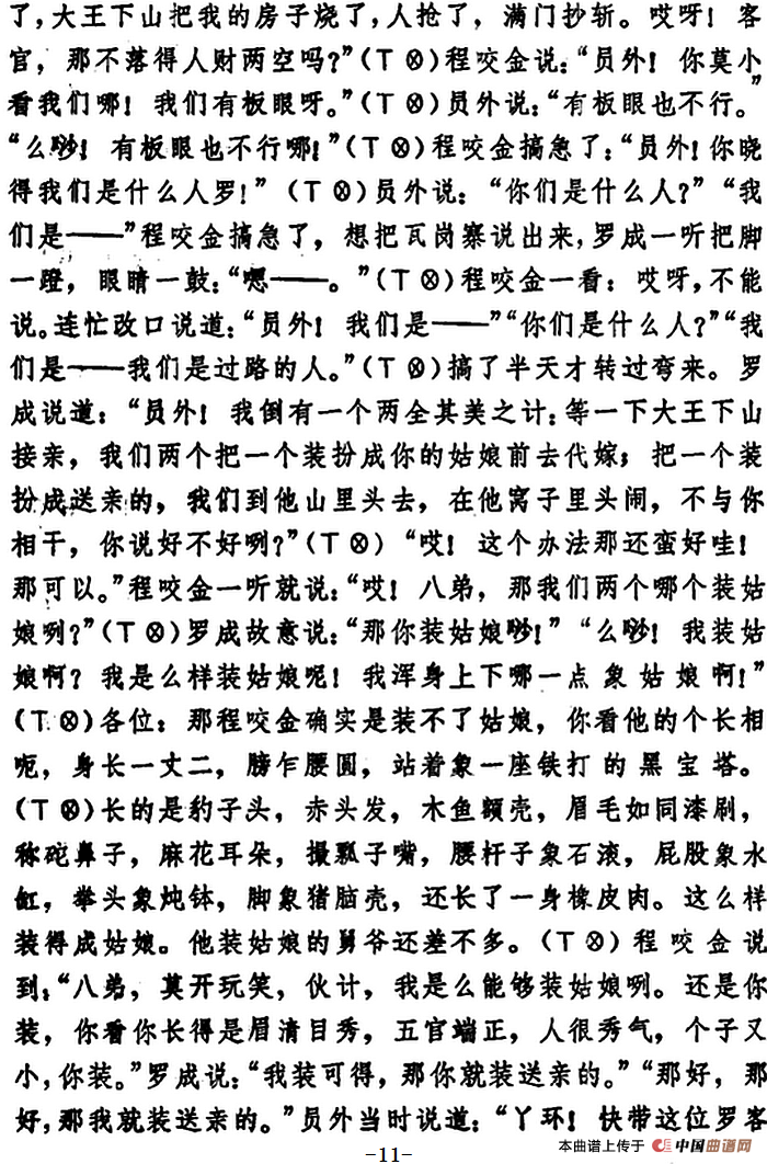 选自何远志编著《湖北大鼓》,湖北大鼓传统曲目。