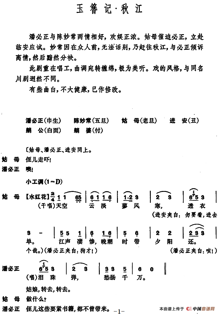 关于《[昆曲]玉簪记·秋江》曲谱的评论