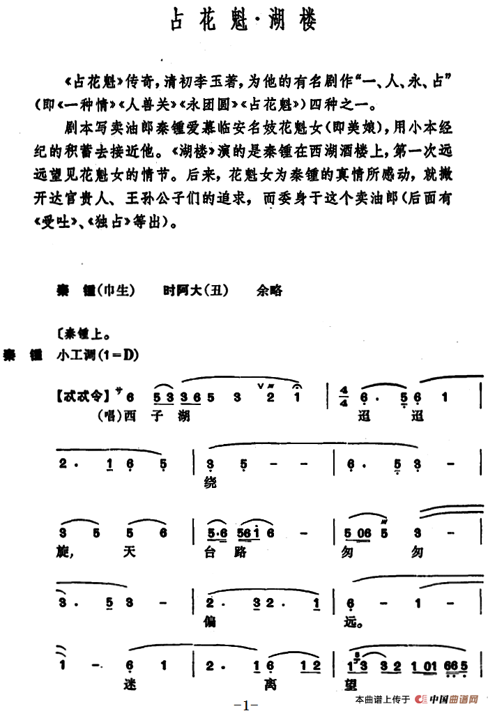 关于《[昆曲]占花魁·湖楼》曲谱的评论