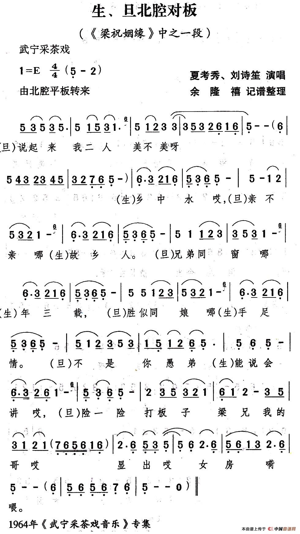 关于《[武宁采茶戏]生、旦北腔对板》曲谱的评论