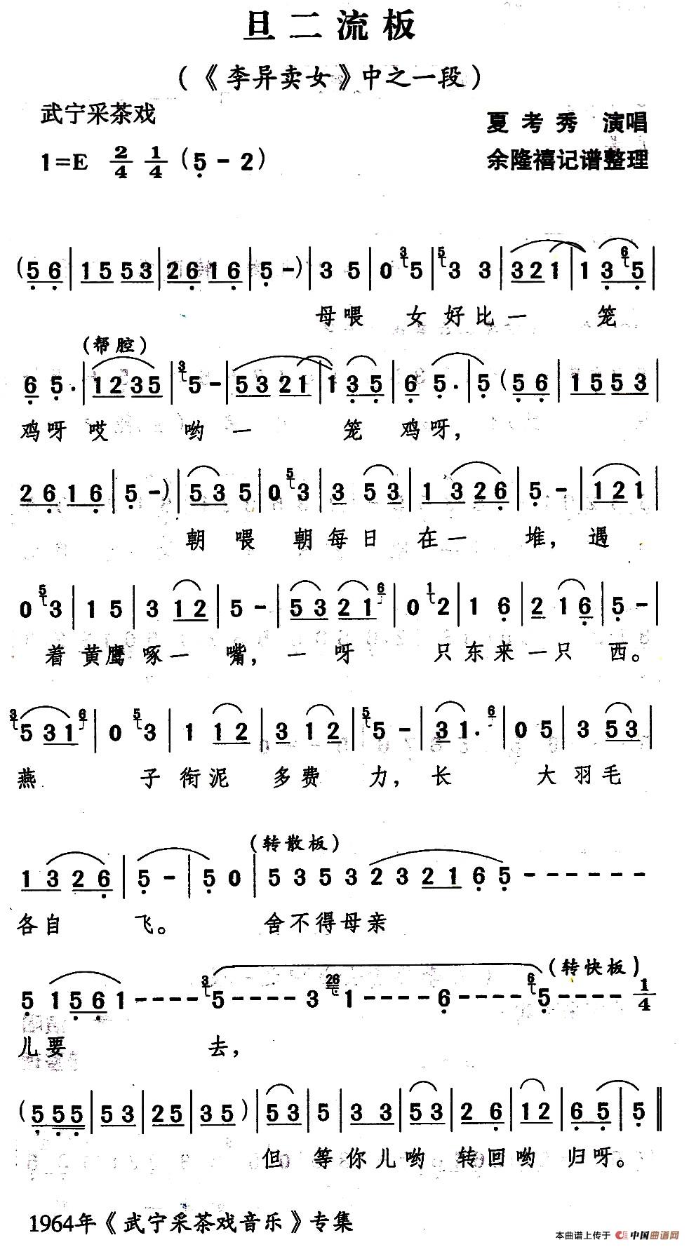 关于《[武宁采茶戏]旦二流板》曲谱的评论