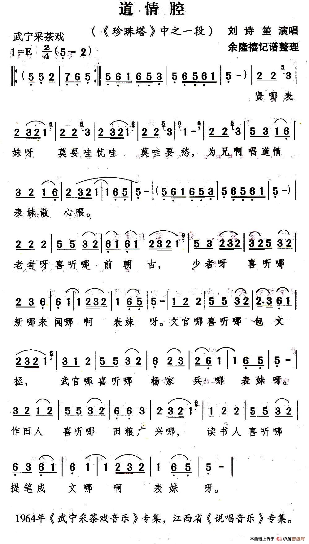 关于《[武宁采茶戏]道情腔》曲谱的评论