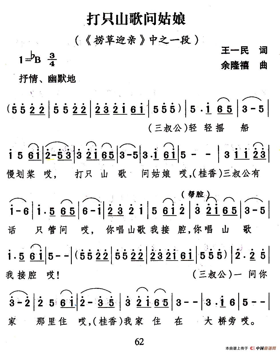 关于《[山歌剧]打只山歌问姑娘》曲谱的评论