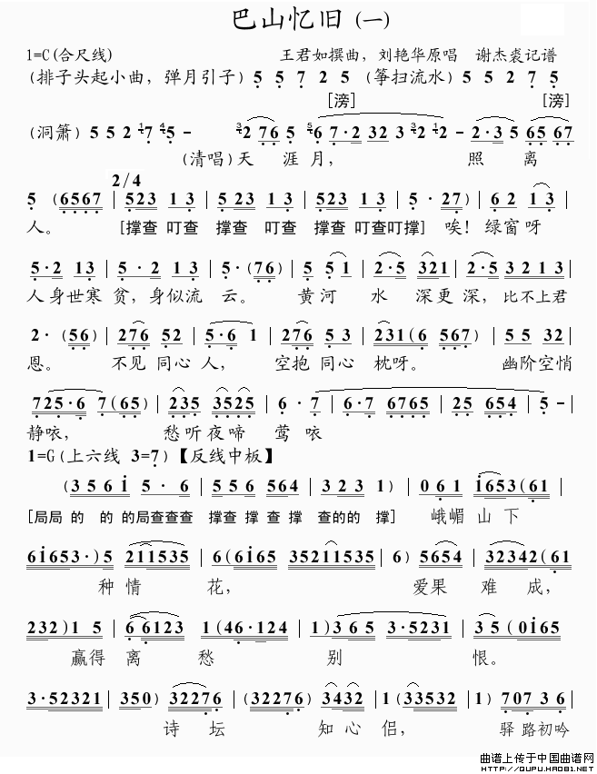 关于《[粤曲]巴山忆旧》曲谱的评论
