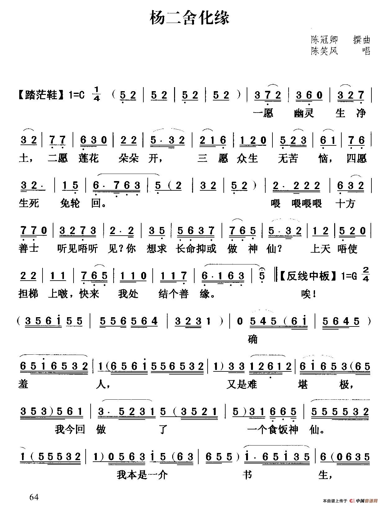 关于《[粤曲]杨二舍化缘》曲谱的评论
