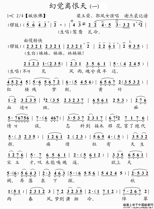 关于《[粤曲]幻觉离恨天》曲谱的评论