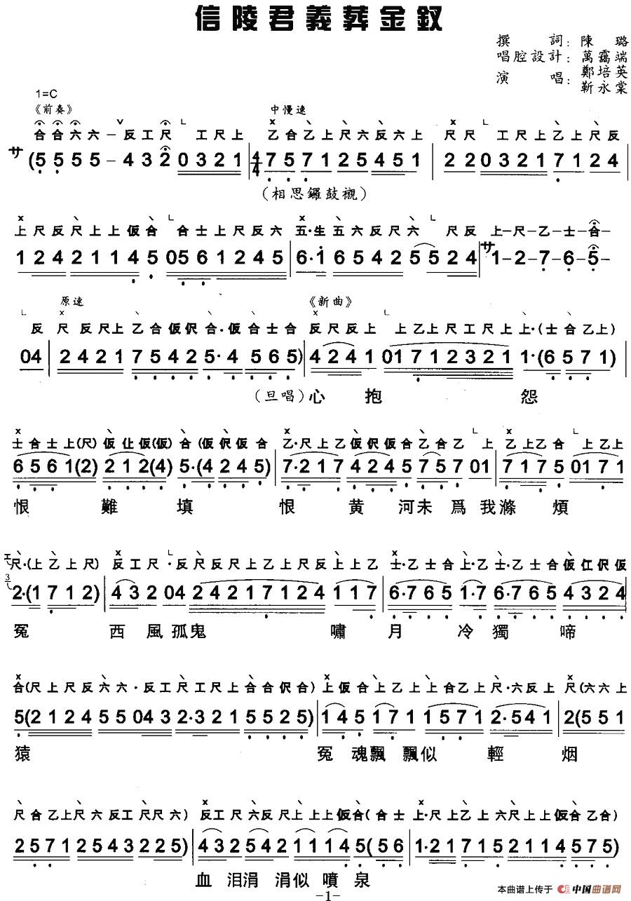 [粤曲]信陵君義葬金钗 (工尺谱+简谱)