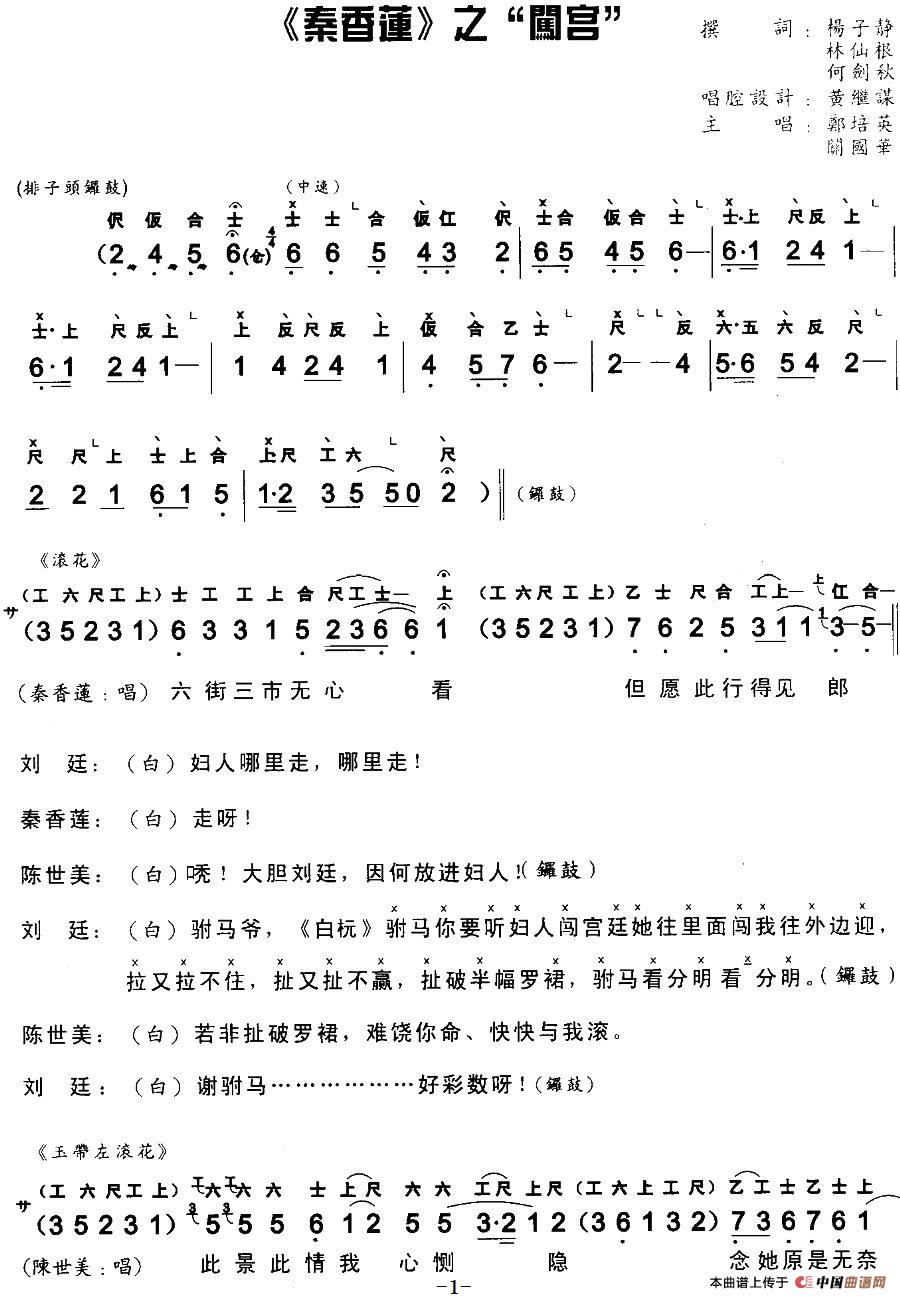 [粤曲]秦香莲之闯宫(工尺谱+简谱)