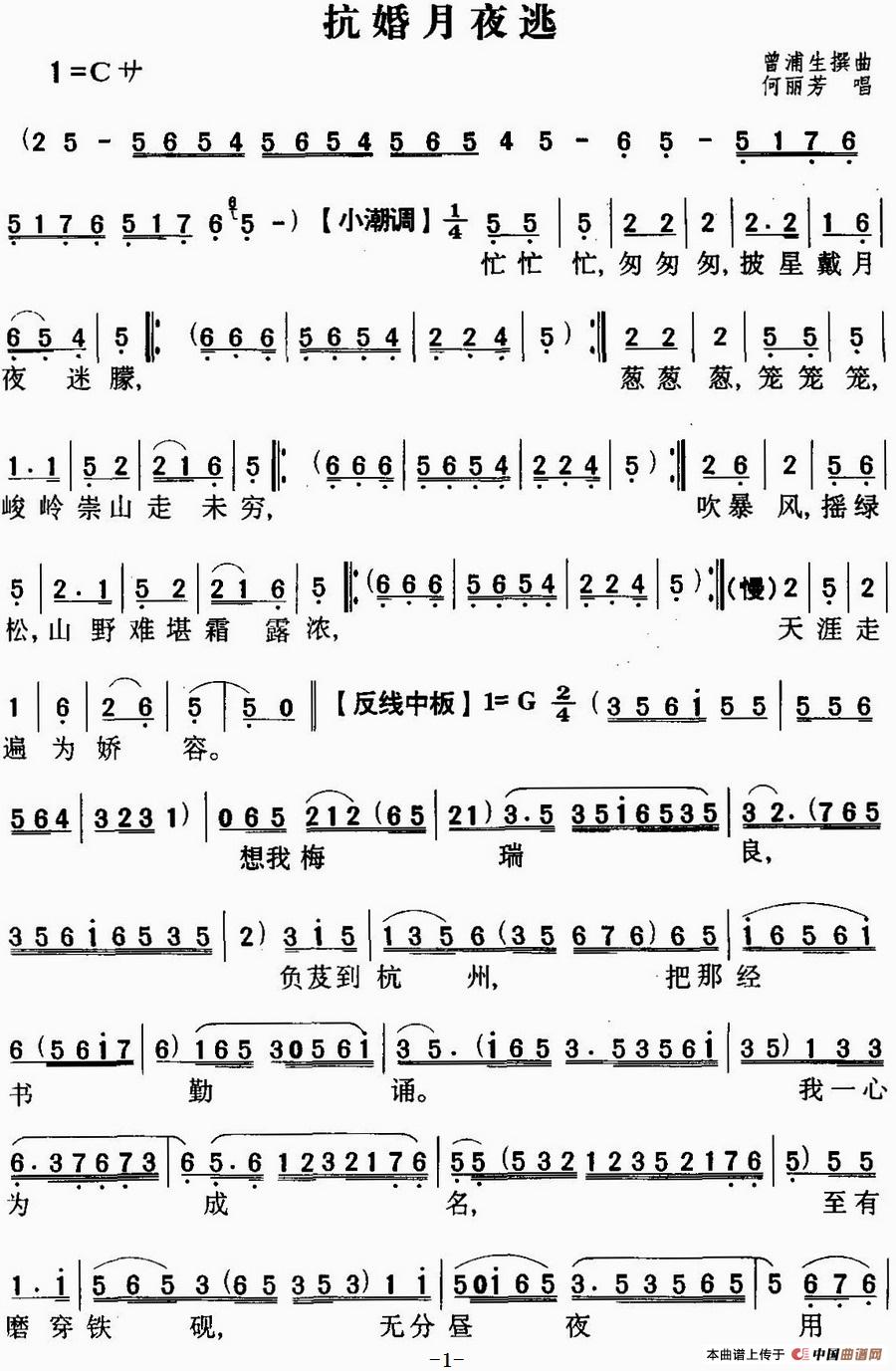 关于《[粤曲]抗婚月夜逃 》曲谱的评论